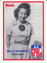 Mildred Marion Warwick [״Mille״] (October 18, 1922 – December 9, 2006) was an infielder who played from 1943 through 1944 in the All-American Girls Professional Baseball League. Listed at 5' 2", 115 lb., she batted and threw right handed.[1][2]