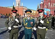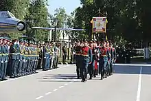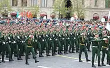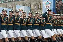It is an annual participant in the Moscow Victory Day Parade on Red Square. The 2016 parade, for the very first time, featured women officers and other ranks from the academy and the Military University of the Ministry of Defence of the Russian Federation.[5][6] They have marched in the parade since then.[7] During the 2020 edition of the parade, cadets led by academy commandant Andrey Toporov were dressed in the historical part of the parade in the uniforms of participants in the Moscow Victory Parade of 1945.[8] In addition, over 100 cadets take part in the Victory Day Parade on Saint Petersburg's Palace Square, as well as similar events held in the Volsk, Penza and Omsk.[9]
