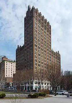 The Military Park Building in Newark, New Jersey is one of the earliest skyscrapers built downtown. Designed by the architectural firm Polhemus & Coffin of New York, it was the tallest building in New Jersey upon its completion in 1926 until being surpassed in 1930 by the Eleven 80.[1][2][3] The landmark takes its name from nearby Military Park. Also nearby are some of the city's most prominent institutions such as Newark Museum, New Jersey Performing Arts Center, Newark Public Library, New Jersey Historical Society and Rutgers University. It is served by the Military Park (NLR station).