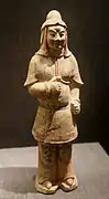 Infantry armour became more common in the Tang era and roughly 60 percent of active soldiers were equipped with armour of some kind.[10] Armour could be manufactured natively or captured as a result of war. For instance 10,000 suits of iron armour were captured during the Goguryeo–Tang War.[23] In the early Tang period when the fubing system was still active, soldiers were supposed to supply themselves with clothing and weapons at the outset of a campaign.[4] However, after the fubing system was replaced with permanent soldiers known as jian'er in the late 7th century, the Tang government began supplying them themselves. Armour and mounts, including pack animals, were supplied by the state through state funds, and thus considered state property. Private ownership of military equipment such as horse armour, long lances, and crossbows was prohibited. Possession was taken as intent of rebellion or treason.[24] The army staff kept track of armour and weapons with detailed records of items issued. If a deficiency was discovered, the corresponding soldier was ordered to pay restitution.[25] The state also provided clothing and rations for border garrisons and expeditionary armies. Soldiers not on active duty were expected to pay for themselves, although "professional" soldiers were given tax exemptions.[26] Officers, however, were permanently employed.[2]
