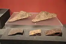 The dao, a single edged blade (saber), was separated into four categories during the Tang dynasty. These were the Ceremonial Dao, Defense Dao, Cross Dao, and Divided Dao. The Ceremonial Dao was a court item usually decorated with gold and silver. It was also known as the "Imperial Sword". The Defense Dao does not have any specifications but its name is self-explanatory. The Cross Dao was a waist weapon worn on the belt, hence its older name, the Belt Dao. It was often carried as a sidearm by crossbowmen.[30] The Divided Dao, also called a Long Dao (long saber), was a cross between a polearm and a saber. It consisted of a 91 cm blade fixed to a long 120 cm handle ending in an iron butt point, although exceptionally large weapons reaching 3 meters in length and weighing 10.2 kg have been mentioned.[31] Divided daos were wielded by elite Tang vanguard forces and used to spearhead attacks.[32]
