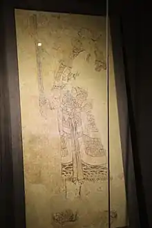 By the Tang dynasty it was possible for armour to provide immense personal protection. Heavy cavalry played an important role in the Tang army during the wars following the Sui dynasty's collapse. In one instance Li Shimin's cousin, Li Daoxuan, was able to cut his way through the entire enemy mass of Xia soldiers and then cut his way back again, repeating the operation several times before the battle was won, at which point he had so many arrows sticking out of his armour that he looked like a "porcupine."[15] In another battle between Li Shimin and Wang Shichong, Li and his entourage of 500 armoured cavalry were attacked by a light cavalry force led by Shan Xiongxin. Shan charged at Li directly but was intercepted by one of Li's generals, Yuchi Gong, who knocked Shan off his horse. Yuchi then led the armoured cavalry force and broke through the enemy army while Li rallied his forces and drove through Shan's light cavalry several times. The arrows and spears of Wang's forces had little effect on Tang heavy cavalry.[16] The effective range of a composite bow against armoured troops in this era was considered to be around 75 to 100 yards.[17]