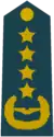 | Gjeneral | Gjeneral Kolonel | Gjeneral Lejtnant | Gjeneral Major | Kolonel | Nënkolonel | Major | Kapiten i parë | Kapiten | Toger | Nëntoger | ||||||||||||||||||||||||||