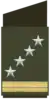 | Gjeneral | Gjeneral Lejtant | Gjeneral Major | Gjeneral Brigade | Kolonel | Nënkolonel | Major | Kapiten | Toger | Nëntoger | |||||||||||||||||||||||||||