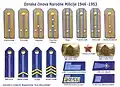 In the course of the demilitarization of the Federal Secretariat, UDBA ceased to be a militarized unit, the operational units of the KNOJ were disbanded, and their tasks fell on the border guard units the Yugoslav People's Army and the People's Militia. In the People's Militia, the system of insignia changed, the officers were allowed to wear civilian clothes outside the service, and service numbers were depicted on a nickel-plated badge. Equipment and weapons were diverse: the officers used both captured and lend-leased equipment.[2]