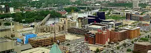 The Mill District is a neighborhood within Minneapolis, Minnesota, United States, and a part of the larger Downtown East neighborhood. The neighborhood contains several former flour mills left over from the days when Minneapolis was the flour milling capital of the world. With almost none of the mills still active, a number of these have been converted into condominiums leading to a revitalization of the neighborhood.[1]