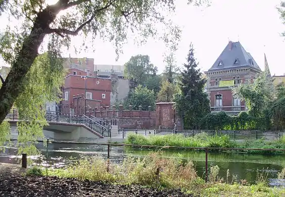 | Lovers' bridge | Footbridge | Previously (1789-1945), the place of a bridge linking Mill Island warehouses to the royal granaries (Opera Nova's location). It was destroyed during liberation fights in January 1945 of Bydgoszcz and never rebuilt. The actual footbridge is part of the revitalization of Mill Island, it was completed in February 2008.[37] | ![]() |