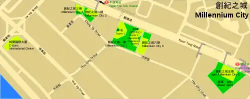 Millennium City (Chinese: 創紀之城; Jyutping: cong1 gei2 zi1 seng4) is a group of skyscrapers in Kwun Tong, Hong Kong built along the southern side of Kwun Tong Road near Ngau Tau Kok station and developed by Sun Hung Kai Properties.[1]
