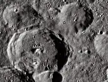 By convention these features are identified on lunar maps by placing the letter on the side of the crater midpoint that is closest to Miller.