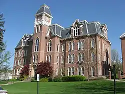 Miller Hall is a historic building located on the campus of Waynesburg University at Waynesburg in Greene County, Pennsylvania. It is located directly to the east of Hanna Hall. It was built between 1879 and 1899, and is a three-story, brick and sandstone building in the Second Empire-style. It has a mansard roof and measures 158 feet long and 54 feet wide, with an 86 feet long and 50 feet wide cross-section. It was named for Alfred Brashear Miller, President of Waynesburg College from 1859 to 1899. The building has housed administrative offices, classrooms, a laboratory, library, and chapel. The building also houses Alumni Hall and the "Martin Room."[2]