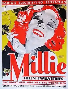 Millie (1931) is a pre-Code drama film directed by John Francis Dillon from a screenplay by Charles Kenyon and Ralph Morgan, based on a novel of the same name by Donald Henderson Clarke. The film was an independent production by Charles R. Rogers, distributed by RKO Radio Pictures, after their acquisition of Pathé Exchange. It stars Helen Twelvetrees in one of her best roles, with a supporting cast that includes Lilyan Tashman, James Hall, Joan Blondell, John Halliday and Anita Louise.