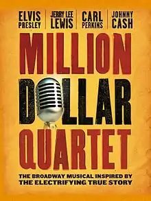 Million Dollar Quartet is a jukebox musical with a book by Colin Escott and Floyd Mutrux. It dramatizes the Million Dollar Quartet recording session of December 4, 1956, among early rock and roll/country stars who recorded at Sun Studio in Memphis, which are Elvis Presley, Johnny Cash and Carl Perkins, and newcomer Jerry Lee Lewis. The musical opened on Broadway in 2010, after several tryouts and regional productions, and spawned a 2011 West End production.