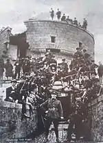 The fort suffered considerable damage during the Irish Civil War. It was occupied by Anti-Treaty forces and on 4 July 1922, it became the target of shelling by the army of the Irish Free State. The Free State Forces under Michael Collins had been given extensive support by the British Army at the express wish of Winston Churchill who insisted that the Republican Forces be crushed. Using the same British Army 18 pounder artillery piece which had shelled the Republican H.Q. in the Four Courts in Dublin some days earlier the Free State Forces bombarded Millmount fort for several hours before the Republican garrison retreated. It has been restored in 2000 and is now open to the public as a military museum.[2]