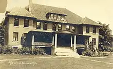 The village of Benzonia was founded as an educational colony in 1858 by the Reverend Charles E. Bailey and four families from Oberlin, Ohio.[3] They immediately set about building an educational institution, holding classes beginning in 1860. They constructed a two-story frame building[4] and chartered the community school, Grand Traverse College, in 1863. Within five years, the building burned, and the school took over a three-story frame building, dubbing it "East Hall." This was the only building used by the college for a number of years, until the 1890s when a new building was constructed, and East Hall was turned into the girl's dormitory, dining room, and president's quarters. In 1891, the school was reorganized as Benzonia College; in 1900 the school became Benzonia Academy.[3]