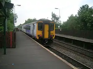 Mills Hill railway station is in the Mills Hill area of Middleton in the Metropolitan Borough of Rochdale,[1] in Greater Manchester, England. The station is 5¾ miles (9 km) north of Manchester Victoria on the Caldervale Line. Mills Hill lies on Middleton's common boundary with Chadderton,[1] and thus serves both communities.