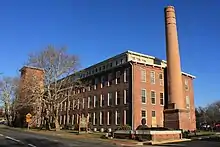 Milltown was incorporated as a borough by an act of the New Jersey Legislature on January 29, 1889, from portions of North Brunswick, based on the results of a referendum held three days earlier. The borough was reincorporated by resolution of the borough council on May 2, 1896. A portion of East Brunswick Township was annexed in 1902.[20] Originally known as Bergen's Mill, named for Jacob I. Bergen who owned the grist mill,[21] the name is believed to have become "Milltown" from residents "going to the mill in town".[22]