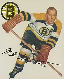 Milton Conrad Schmidt (March 5, 1918 – January 4, 2017) was a Canadian professional ice hockey centre, coach and general manager, mostly for the Boston Bruins of the National Hockey League (NHL), where he was a member of the Kraut Line. He was elected to the Hockey Hall of Fame in 1961. In 2017 Schmidt was named one of the '100 Greatest NHL Players' in history.[1]