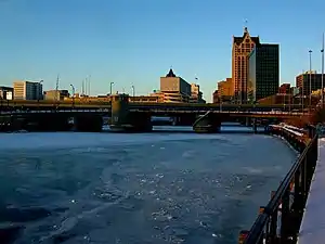 The Milwaukee River is a river in the state of Wisconsin. It is about 104 miles (167 km) long.[1] Once a locus of industry, the river is now the center of a housing boom. New condos now crowd the downtown and harbor districts of Milwaukee attracting young professionals to the area. The river is also ribboned with parks as it winds through various neighborhoods. Kayaks and fishing boats share the river with party boats. An extensive Riverwalk featuring art displays, boat launches and restaurants lines its banks in downtown Milwaukee.