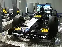 One chassis was built for the crash tests which took place on 5 February with Minardi opting to be conservative with the side impact structures and preferred to shift extra weight over the possibility of damaging the PS01's tub for failing the crash test.[5][7] A shakedown of the PS01 took place on 21 February at the Autodromo di Vairano where thirty laps were completed and system checks were conducted and an aero-balance test took place.[8] The PS01 was launched on the morning of 28 February 2001 at Parliament House, Melbourne.[4] Stoddart hoped Minardi would secure tenth place or higher in the Constructors' Championship and stated he had a five-year plan to get the team running in the mid-field.[9]