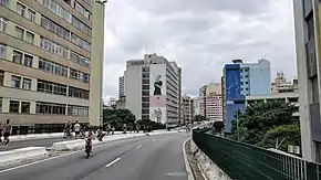 The Minhocão, officially "Via Elevada Presidente João Goulart", is a 3.5-kilometre (2.2-mile) elevated highway in São Paulo, Brazil. The highway was inaugurated in 1971 as Elevado Presidente Costa e Silva; its name was changed in 2016 after a law was passed changing names of all streets honoring people involved with the Brazilian military dictatorship.[1] The road is named after the minhocão, a quasi-fictitious earthworm-like creature.