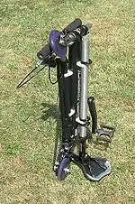 The Mini125 is a design of portable bicycle. The current production features four models that have the same frame design but different wheels. The standard model weighs 5.9 kg, folds into a 73 cm × 36 cm × 22 cm package and has polyurethane wheels of diameter 125 mm or 110 mm. The gear assembly is typical of city bikes, while the transmission uses a minimoto chain and pinion. Mini125 is marketed under the MDEbikes brand and was released and presented at the 2003 Handmade Bicycle Show of Tokyo. The bike is designed and developed by Giuseppe and Paolo Ganio of Turin, Italy. (Giuseppe is also an entrepreneur at it:Mdebikes, Alpignano, Italy.)