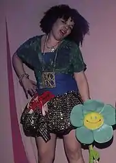 In the spring of 1982 (as featured in the June issue of Time Magazine that year), short skirts began to re-emerge, notably in the form of "rah-rahs", which were modeled on those worn by female cheerleaders at sporting and other events. In 1985, the British designer Vivienne Westwood offered her first "mini-crini", an abbreviated version of the Victorian crinoline.[72] Its mini-length, bouffant silhouette inspired the puffball skirts widely presented by more established designers such as Christian Lacroix.[73][74] In 1989, Westwood's mini-crini was described as having combined two conflicting ideals – the crinoline, representing a "mythology of restriction and encumbrance in woman's dress", and the "equally dubious mythology of liberation" associated with the miniskirt.[75]