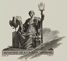 The Ministry of Police (French: Ministère de la police) was the Government of France department responsible for the police from its creation in 1796 to its suppression in 1818, and briefly again between 1852 and 1853. It was headed by the Minister of Police.