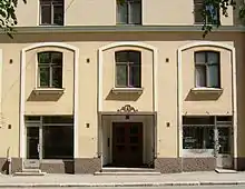 Madame Craucher's salon was a popular gathering place for Tulenkantajat ("The Flame Bearers")[1] and other young writers of the time because of her generous service and her fascinating persona.[3] Of the authors who visited Craucher's salon, at least Joel Lehtonen, Martti Merenmaa and Mika Waltari have described the salon and its owner. The salon was located at Freesenkatu 4 A 3. The salon, or apartment Madame Craucher, was bought by master builder K. E. Lund on 7 November 1924. The 47-square-meter apartment at that time was a modern type of apartment, a double apartment. The most striking part of it was the Turkish room. The colorful interior was softened by suitable lighting. The materials were stunning: oriental rugs all the way to the walls, brass tobacco tables and a large number of cushions to sit on.[7] From Freesenkatu, Craucher later moved to Mechelininkatu 23 A 20.[8]