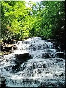 Minnehaha Falls is a series of cascades located on Falls Creek in Rabun County, Georgia. The waterfalls descend about 100 feet over a stepped rock formation. The falls are near Lake Rabun, within the boundaries of the Chattooga River Ranger District of the Chattahoochee National Forest.