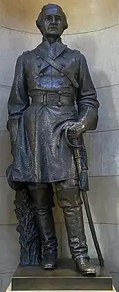 Despite Gilbert's evaluation, the work by Backus was placed in the Capitol, and many other memorials without Gilbert's blessing followed.[32] Backus also went on to design a bas relief bronze memorial plaque for the First Minnesota Volunteer Infantry, which is mounted on a wall on the Capitol's first floor. In 1928 President Coolidge dedicated a second casting of Backus' William Colvill statue in Cannon Falls, Minnesota, Colvill's hometown[31]
