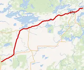 The route runs concurrent with State Highway 1 for 26 miles (42 km) from Vermilion Lake Township (west of Tower) to Ely.