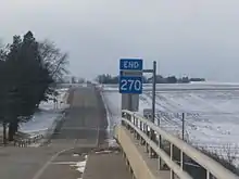 Minnesota State Highway 270 (MN 270) is a 7.659-mile-long (12.326 km) state highway in the southwest corner of Minnesota, which runs from its intersection with County State-Aid Highway 13 (CSAH 13) in the city of Hills, and continues east to its eastern terminus at its intersection with U.S. Highway 75 (US 75) in Clinton Township, eight miles (13 km) south of Luverne.