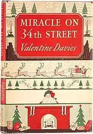 Miracle on 34th Street (1947) is a best-selling novella by Valentine Davies, based on the story he wrote for the 1947 film with the same name, which earned him an Academy Award for Best Story. After having written the story for the film, Valentine Davies did a novelization of it, which was published as a 120-page novella by Harcourt Brace & Company in conjunction with the film release.[1]