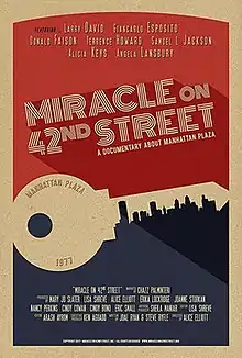 Miracle on 42nd Street is a 2017 documentary film that delves into the history and impact of the Manhattan Plaza apartment complex in the Hell's Kitchen neighborhood in New York City. The documentary is narrated by Chazz Palminteri and features interviews with people involved with the development of the project as well as previous tenants such as Alicia Keys, Terrence Howard, Donald Faison, Larry David, Samuel L. Jackson (who worked at Manhattan Plaza as a doorman), and many others.[1][2] It is directed by Alice Elliott, an Academy Award-nominated filmmaker. Mary Jo Slater, the producer, and Lisa Shreve, the consulting editor, are both previous tenants of the building.[3] The film opened in November 2017 at the Doc NYC film festival.[1]