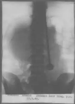 On May 11th 1948, Dajo alleged that he was instructed by voices to eat a steel needle. It was surgically removed on May 13, 1948. He would need to spend much time recovering in the hospital, and to demonstrate his health he walked through Zurich directly after being released. Ten days later, when De Groot picked up his wife from the airport, Dajo lay down on a bed and went into a trance-like state. On arrival De Groot's wife was not comfortable with someone lying down as if dead, and asked De Groot to check his health. On the third day De Groot's wife asked him to check again, this time his neck felt cold.[4] The medical examiner announced he had been dead for a day. The autopsy revealed Dajo had died of an aortic rupture.[1]