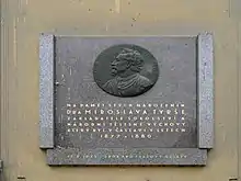 As a 16-year-old boy he fought in the streets of Prague during the Revolution of 1848, and then boasted of his shot-through cap.[3] He also changed his Christian name first to Bedřich (Czech version of Friedrich) and then to Slavic Miroslav.[2] He became doctor of philosophy in 1860.[4] His thesis dealt with the philosophy of Arthur Schopenhauer.[3] He contributed philosophical articles to the first Czech encyclopaedia – Riegrův Slovník naučný, František Rieger's "Reference Book".[4] After failing to secure an academic job, he left Prague to work as a tutor for the sons of a businessman in Nový Jáchymov near Beroun.[2]