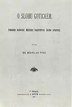 His first book on aesthetics was Hod olympický (Olympic Feast, 1868), an ode to Greek arts and sports. In his next book O zákonech kompozice v umění výtvarném (The Law of Composition in Art, 1873) he distinguishes three kinds of art work: 1. more content than form, 2. balanced, 3. more form than content. His study O zákonu konvergence při tvoření uměleckém (The Law of Convergence in Creating Art, 1880) argues that both form and content should be submitted to the artist's idea. The idea is influenced by external conditions which he described in his other important books O slohu gotickém (Gothic Style, 1881), Láokoón, dílo z doby římské (Laocoön, Masterpiece from the Roman Times, 1873), Phidias, Myron, Polyklet (1879) and the unfinished Raffael Santi a díla jeho (Raffael Santi and his work, 1873, published 1933). Tyrš saw an ideal type of Czechslavic men and women in the paintings of Josef Mánes while in contrast, he did not think highly of the work of Mikoláš Aleš.[3] His life interest and greatest monograph focused on the life and work of Jaroslav Čermák (1879). Among the world's painters he admired Eugène Delacroix.[3]
