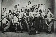 As a born German he wanted the club to be open to all the nationalities, but Germans in Bohemia refused to be in the same club with Czechs, so Tyrš changed his mind and started promoting the new club as bringing the Greek ideal only to Czech people.[2] He saw in his teachings a kind of opposition to the German "völkisch" virtues established by Friedrich Ludwig Jahn.[3] First Sokol president Jindřich Fügner introduced the members' habit of calling each other brother and sister. Their costume was designed by Josef Mánes. Tyrš became the first vice-president.[2]