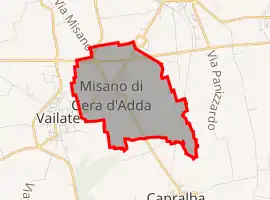 Misano di Gera d'Adda borders the following municipalities: Calvenzano, Capralba, Caravaggio, Vailate.