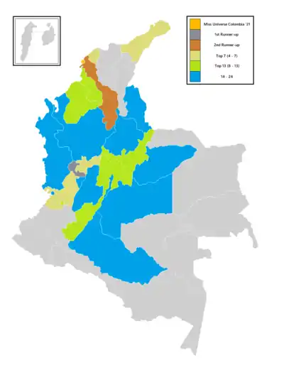 Results of the 24 territories represented in the Miss Universe Colombia 2021 competition.
