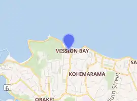 Mission Bay is a seaside suburb of Auckland city, on the North Island of New Zealand. The suburb's beach is a popular resort, located alongside Tamaki Drive.[1] The area also has a wide range of eateries. Mission Bay is located seven kilometres to the east of the city centre, on the southern shore of the Waitematā Harbour, between Ōrākei and Kohimarama. It covers an area of 1.08 km2 (267 acres), about three quarters of which comprises low hills, surrounding the remaining quarter, which slopes down to the sea. Local government of Mission Bay is the responsibility of the Ōrākei Local Board, which also includes the suburbs of Ōrākei, Kohimarama, St Heliers, Glendowie, St Johns, Meadowbank, Remuera and Ellerslie.