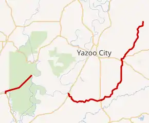 | Yazoo | Satartia | 10.586 | 17.037 | Satartia Road | Southern terminus of eastern segment | ||
