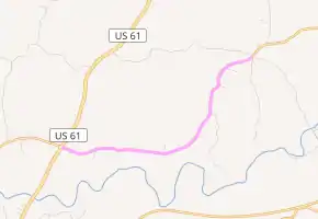 MS 462 starts at the intersection with US 61 and Grand Gulf Road north of Port Gibson, and it travels eastward.[2] The road first travels along Pierre Bayou, and it soon turns northeastward into a forested area.[5] The route crosses Lick Branch,[2] and it intersects Vellie Morand Road.[5] MS 462 then turns eastward near the unincorporated area of Willows,[2] and state maintenance ends near Willows Road and Old Port Gibson Road.[6][2] The road continues as Old Port Gibson Road, which continues to Raymond.[5]