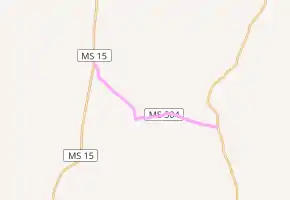 MS 504 starts at the three-way junction with MS 15 in Newton County south of the city of Newton. The route begins travelling southeastward, intersecting Boutwell Road,[2] and entering an area of farmland. The road enters a forested area at Nicholson Road and enters Jasper County past the intersection.[2][6] The road continues southward until it reaches a T-intersection with County Road 24 (CO 24) near Garlandville. MS 504 turns east and begins travelling towards the Jasper–Newton county line. At CO 5044, the route begins travelling southeastward towards its eastern terminus at MS 503 in Hero. The road continues as CO 24, which continues to MS 513.[3]