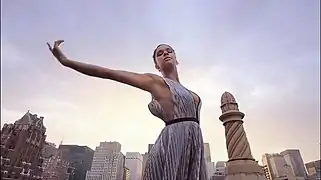 A Ballerina's Tale, a documentary film about Copeland, debuted at the Tribeca Film Festival in April 2015[199] and was released in theaters in October 2015.[200] It was then aired in February 2016 as part of PBS' Independent Lens series.[201][202] Dawn Heinecken, a professor of women's studies at the University of Louisville, described the film as "part of a calculated media campaign designed to launch Copeland into mainstream celebrity", but notes that film "directly [challenges] the ideology of white supremacy that undergirds the world of classical ballet."[203]