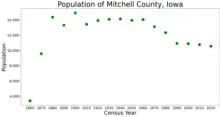 Mitchell County is a county located in the U.S. state of Iowa. As of the 2020 census, the population was 10,565.[1] The county seat is Osage.[2] The county is named in honor of John Mitchel.