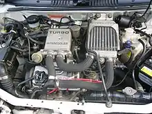 The Mitsubishi 3G8 engine is a range of three-cylinder powerplant from Mitsubishi Motors, introduced in the fifth generation of their Mitsubishi Minica kei car. In common with other contemporary engines in the class, it could be specified with many advanced technologies despite its diminutive size, including multi-valve cylinder heads and double overhead camshafts. The top-of-the-line Dangan ZZ variant was also the first kei car to benefit from turbocharging. In 1987 Mitsubishi was the first manufacturer to supercharge a kei vehicle, and in 1989 became the world's first production car to feature five valves per cylinder, ahead of similar developments by Bugatti, Audi, Ferrari and Toyota.[1][2]