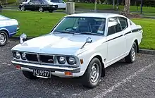 There were some minor adjustments to safety equipment in October 1973, and the automatic transmissions were dropped in August 1974. This was followed by a second styling tweak in February 1975 when the car gained a honeycomb-style front grille, enough to be labelled the "New Galant GTO" in promotional material. Two-litre GTOs built after this date also gained the Astron 80 engine with Mitsubishi's Silent Shaft system, while the four-speed manual transmission was now only available with the smallest engine. In October 1975 the engines were updated with Mitsubishi's MCA emissions control system with an exhaust gas recirculation valve and a thermal reactor, all to pass the upcoming 1976 emissions standards.[4] The four-speed transmission was discontinued entirely at this time, leaving only five-speed manuals. Power was now 97 PS (71 kW) for the 1700 SL-5 and 105 PS (77 kW) for the 2000 SL-5.[5]