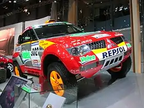 The Mitsubishi Pajero Evolution is an off-road competition car based on the Mitsubishi Pajero. It was specially designed to take part in the rally raids with the main objective of winning the Dakar Rally.[1] In addition to those produced for competition use only, a road-legal version was manufactured by Mitsubishi from 1997 to 1999 in order to homologate the Pajero Evolution for the Dakar Rally's T2 class. Approximately 2500 road-legal examples were produced.[2][3][4]