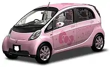From July 25 to 31, 2006 the company displayed a unique Mitsubishi i Hello Kitty edition at the Mitsukoshi department store in Tokyo's Nihonbashi district. Based on the two-wheel drive G model, it had a pink paint scheme with co-ordinated interior, "Princess Kitty" decals on the doors and windows, a ribbon decal on the roof, and themed headrests with small, feline ears. The car, which was described as "the most quintessentially Japanese car...ever" for fusing two of the country's cultural iconsHello Kitty and keijidōsha[29]—was eventually sold in a charity auction on behalf of UNICEF.[29]